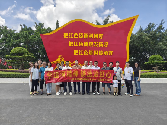 为热烈庆祝中国共产党成立104周年,深入推进党史学习教育,广东粤海律师事务所党支部精心组织了“七一”系列主题活动。6月22日,党支部全体党员及律所人员前往雷州青年运河红色教育基地,开展“学运河精神,铸法治红心”主题党日活动,大家通过重温入党誓词、参观核心展馆、徒步领略运河风光,深刻学习了建设者“为民、担当、奋斗、廉洁”的运河精神,厚植红色底蕴,筑牢思想根基。