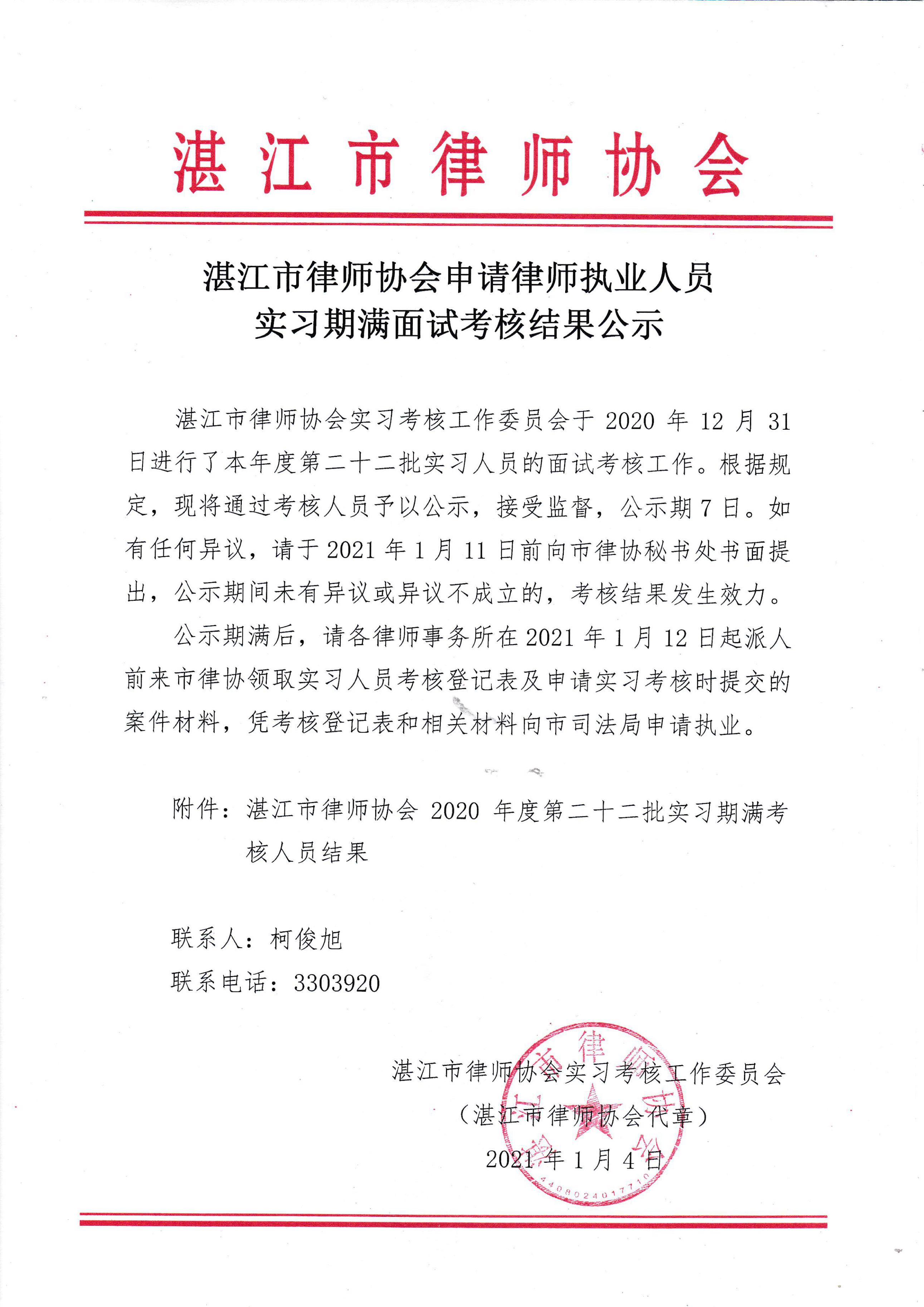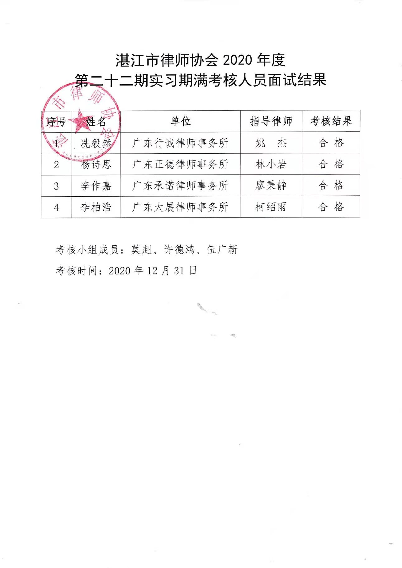 湛江市律师协会申请律师执业人员实习期满面试考核结果公示