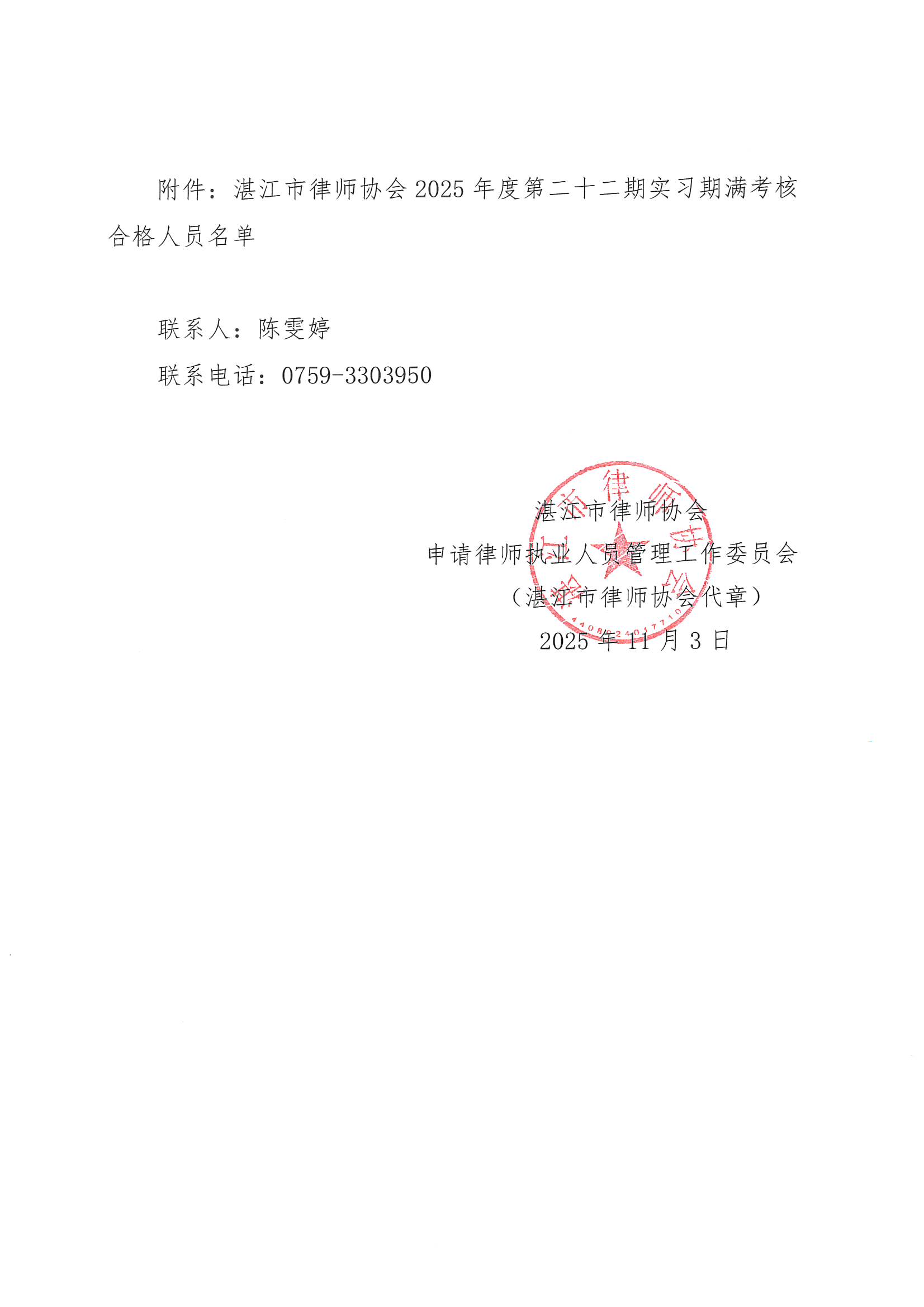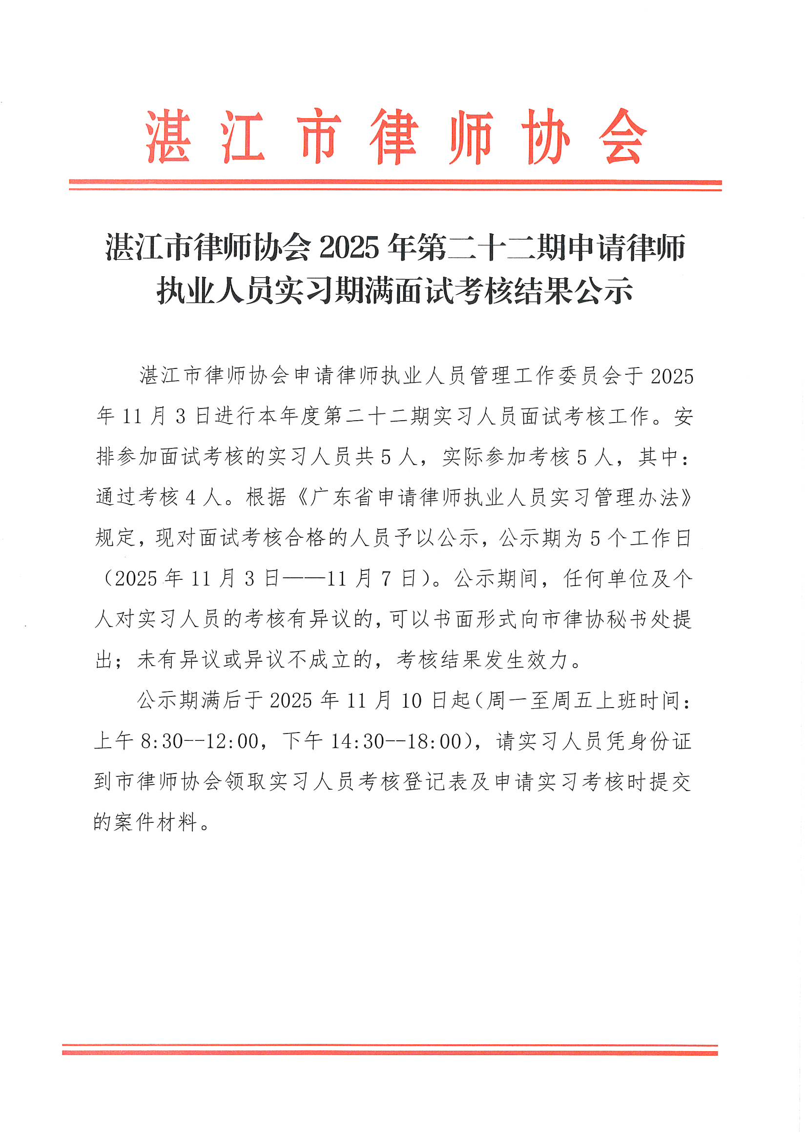 2025年第二十二期申请律师执业人员实习期满面试考核结果公示