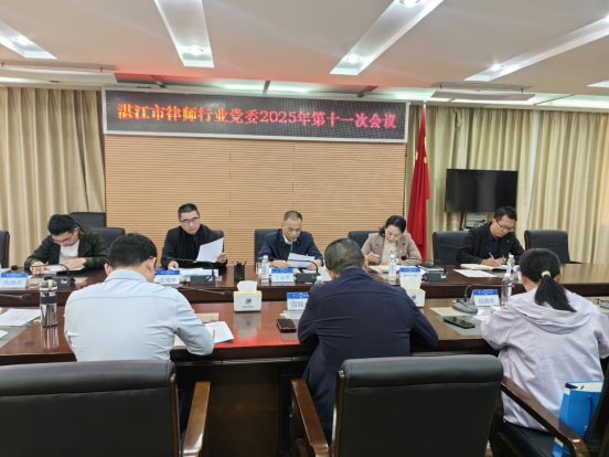11月27日下午,市司法局党组成员、副局长、市律师行业党委书记丁永平主持召开湛江市律师行业党委2025年第十一次会议。会议传达学习习近平总书记对全面依法治国工作作出的重要指示和中央全面依法治国工作会议精神,研究审议2025年度接收预备党员等事项。